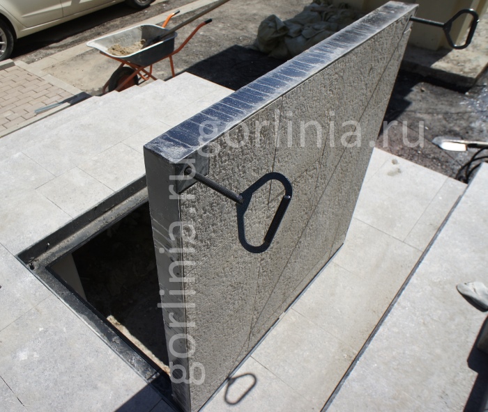 | Из бетонных колец ⌀1000 отверстие ⌀700 | Распашной 800*800*90 |