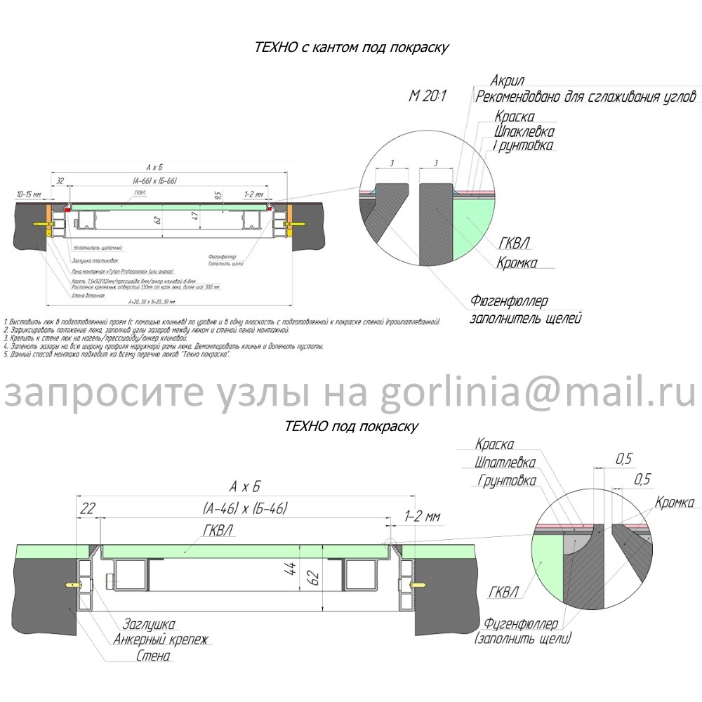 - без обрамления по принципу потайных лючков-невидимок, когда профиль выступает маяком для отделочного покрытия.