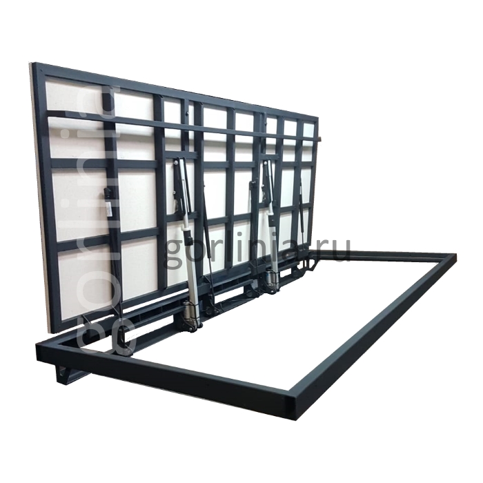 При постановке крышки на стопор в режиме ручного открывания исключить возможность использования привода.Изделие отгружается с установленными подъемниками и соединительными проводами. Актуаторы выставлены соосно и отрегулированы с контрольным пуском инженером по качеству изготовителя. Снизу по стороне шарниров стоит кронштейн на направляющих. Узел выставляется и крепится в торец плиты пола, а также к реактивной планке после установки при поднятой крышке согласно инструкции.