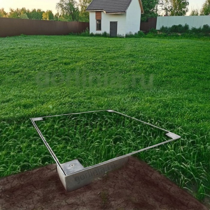 Для подъема крышки в отверстия по углам вставляют специальные крюки с Т-образным наконечником. Закажите исполнение с крепежными ушами (пластинами) для удобства анкеровки в основание, установки в уровень грунта. Усиление каркаса корыта профилем является доп. опцией (см. галерею фото)