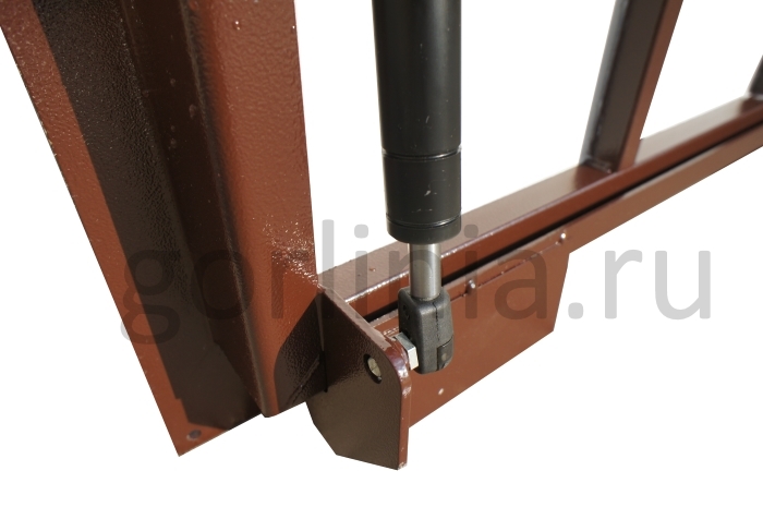 Облегченная модель в заказном размере без щелей в полу с уведенными за ось открывания петлями по длине 700. Легкая ходовая часть и удобная установка. При формировании конфигурации напольного отверстия обратите внимание, что защитные кожухи шарниров выходят за посадочную отметку по плечевой стороне 600.
