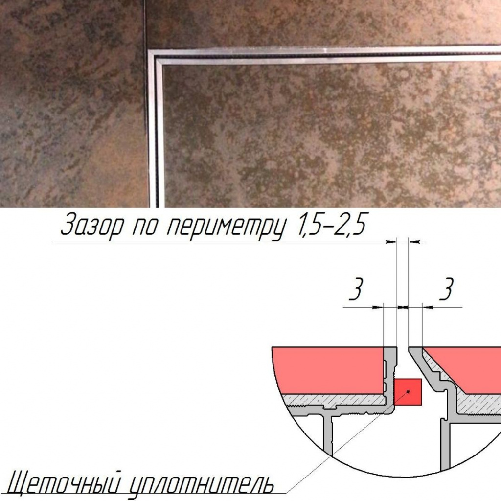 Алюминиевая коробка с порогом собирается на оцинкованных закладных деталях с навеской створки на осевых петлях с одной осью вращения. Положение люка регулируется по вертикали, горизонтали и глубине посадки на всем протяжении эксплуатации изделия.